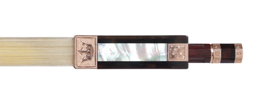 A.R. BULTITUDE violin bow, tortoise shell, chased rose-gold mountings, gold Tudor Rose Inlays, octagonal stick 62.2g | Metzler Violins