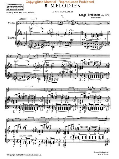 Prokofiev, S. (Albert Spalding, ed.): 5 Melodies Op. 35A (Violin & Piano)