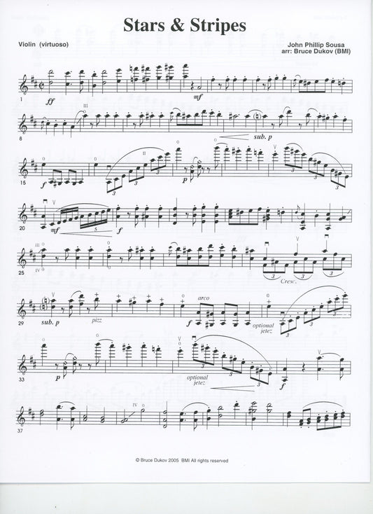 Sousa, J.P. (Bruce Dukov): Stars & Stripes Violin Solo, in the style of Wieniawski, Virtuoso level, parts & score, violin and piano