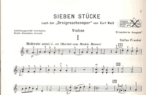 Weill, Kurt: Seven Pieces from the Threepenny Opera-Easy version (violin & piano)