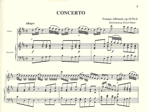 Albinoni, T.: Concerto Op10/6 in D (violin & piano)