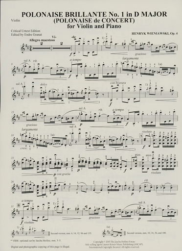 Wieniawski, H. (Heifetz/Granat): Polonaise Brillante No. Op. 4 (violin & piano)