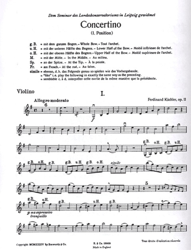 Kuchler, F. : Concertino in G Op.11 (violin & piano)