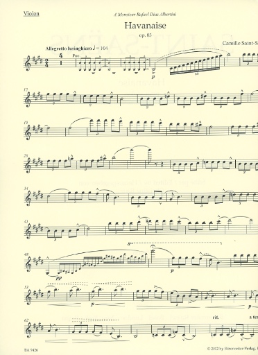 Saint-Saens, Camille: Havanaise Op.83 urtext (violin & piano) Barenreiter