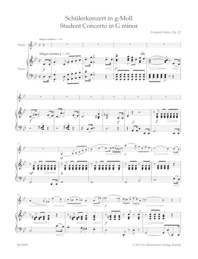 Seitz, F.: Student Concerto in G minor Op. 12 (violin & piano) Barenreiter