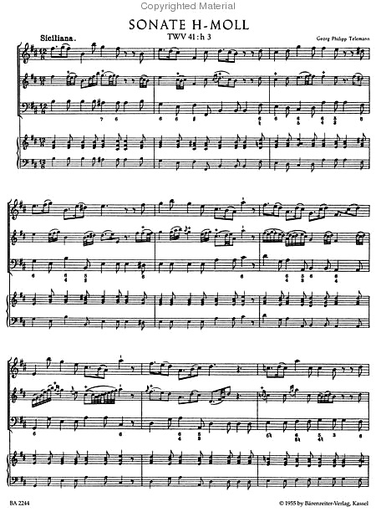 Telemann: Twelve Methodical Sonatas, Vol.4 B & C minor (violin & piano, cello) Barenreiter