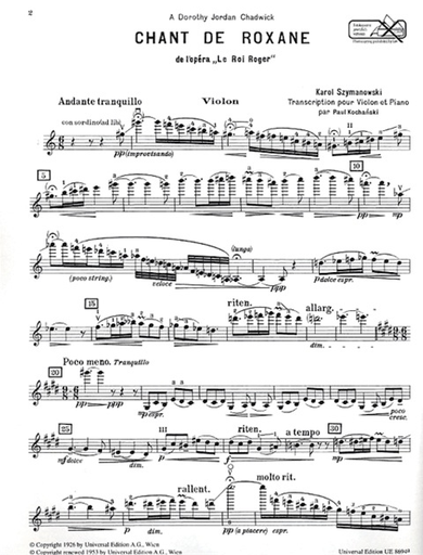 Szymanowski, K.: Chant de Roxane from the opera ''Le Roi Roger''arr. Kochanski (violin & piano)