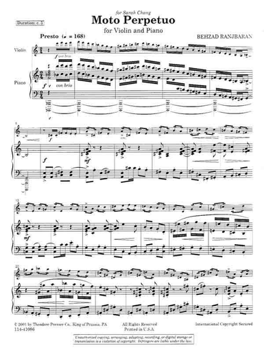 Ranjbaran, Behzad : Moto Perpetuo (violin and piano)