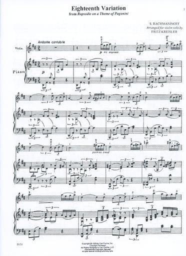 Rachmaninoff, S. (Kreisler): 18th Variation from Rhapsodie on a Theme of Paganini (violin, and piano)