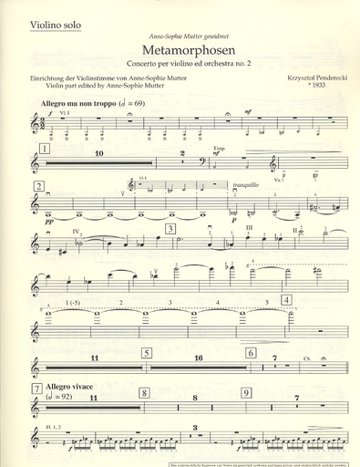 Penderecki, Krzysztof: Violin Concerto #2 Metamorphosen (violin & piano)