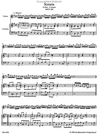 Handel, G.F. (Hinnenthal): Complete Works for Violin & Basso Continuo (violin, cello, piano) Barenreiter
