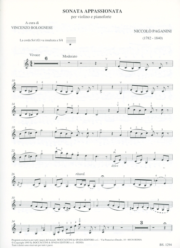 Paganini, Niccolo: Suonata Appassionata (violin & piano)