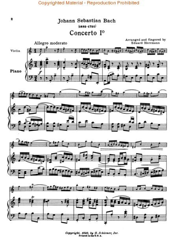 Bach, J.S. (Herrmann): Concerto in A minor, BWV 1041 (violin, and piano reduction)