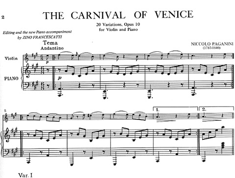 Paganini, Niccolo: Carnival of Venice (violin & piano)