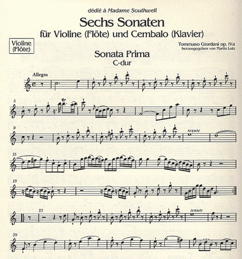 Giordani, Tommaso: Six Sonatas Op.IVa V.1 (violin & piano)