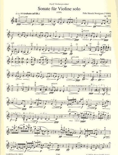 Nordgren, Pehr Henrik: Sonate for Violin Solo (violin)