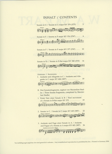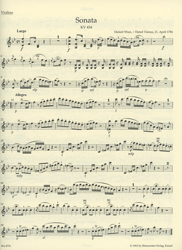 Mozart, W.A. (Reeser): Sonatas for Piano and Violin (Late Viennese Sonatas) Barenreiter