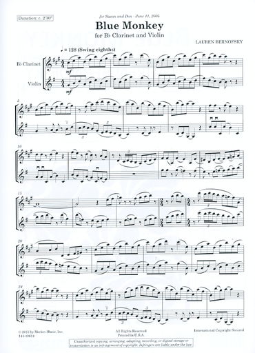 Bernofsky, L.: Blue Monkey for Bb Clarinet and Violin (violin, and clarinet)