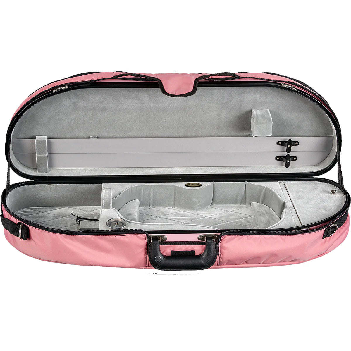 Bobelock Fiberglass Moon-Shaped violin case with padded cover, Pink / Gray