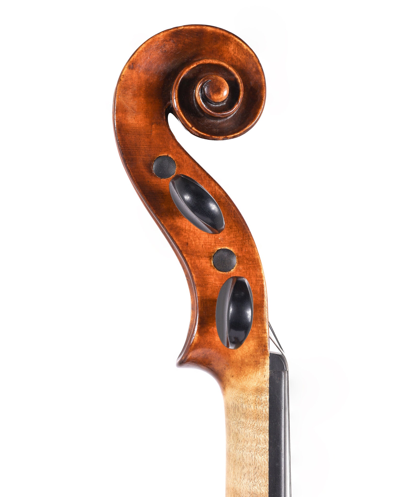 Born in 1874 in Jonava, Lithuania. Made first violin in 1890. Moved to Baltimore in 1900, and opened a shop there. Made instruments based on a Strad model until 1925, and thereafter used his own personal model. Made his own golden reddish-brown oil varnish. He made more than 400 violins, 20 violas, and 28 cellos. This violin is an excellent example of his work, and is in good, lightly repaired condition.