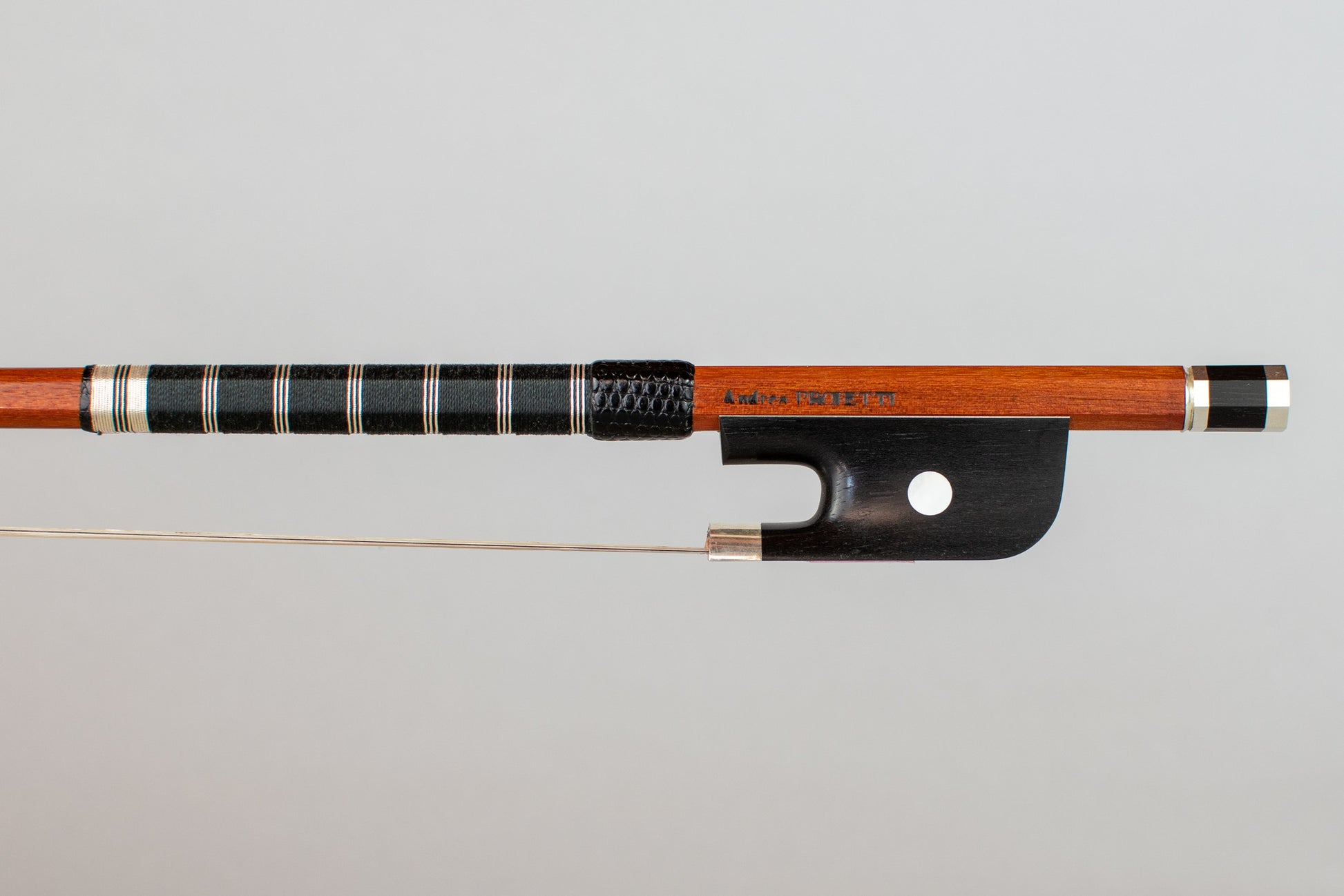 Andrea PROIETTI round, flamed Pernambuco violin bow, silver mounted, Louis Simon Pajeot model, 60.5 g, ITALY