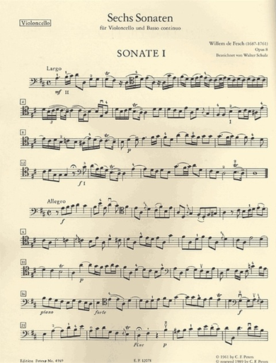 De Fesch, Willem: 6 Sonatas Op.8 (cello & piano, 2nd cello ad lib)