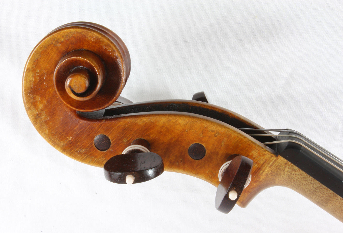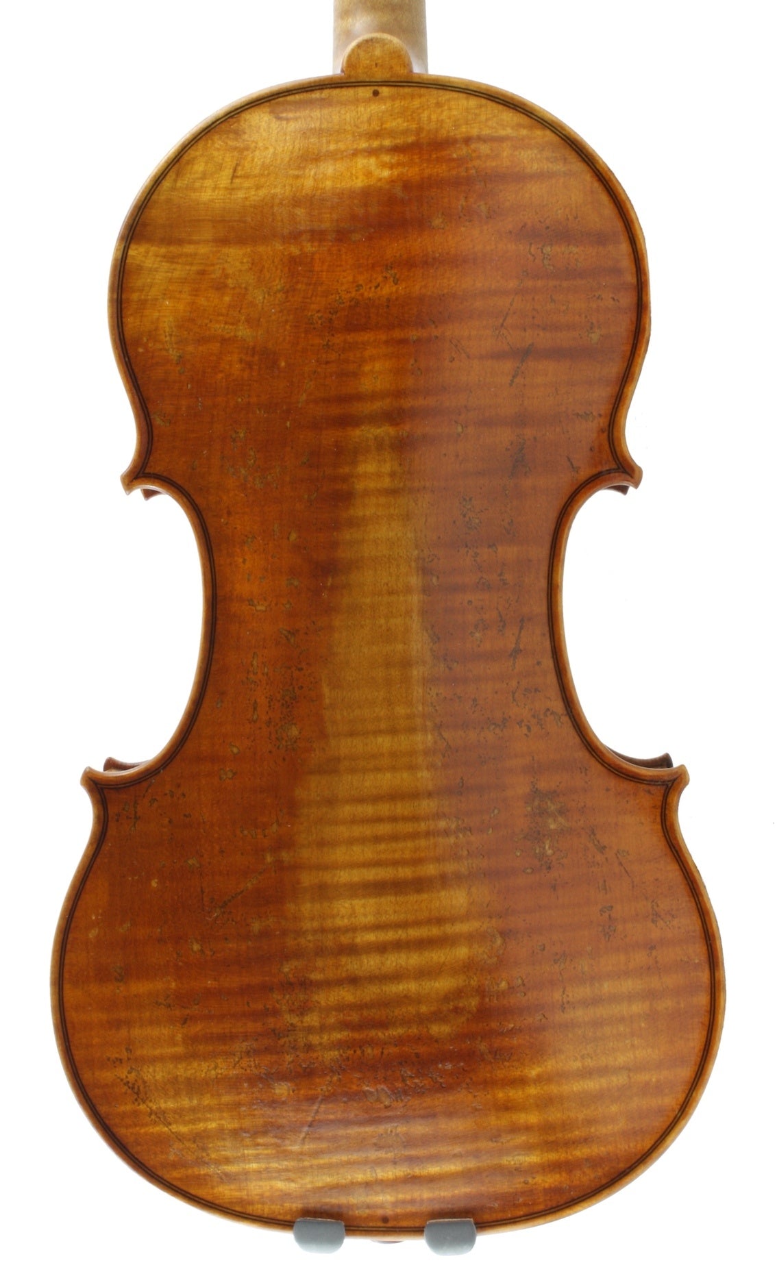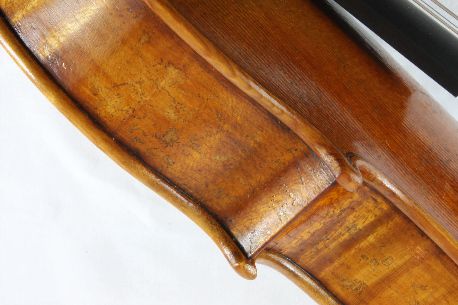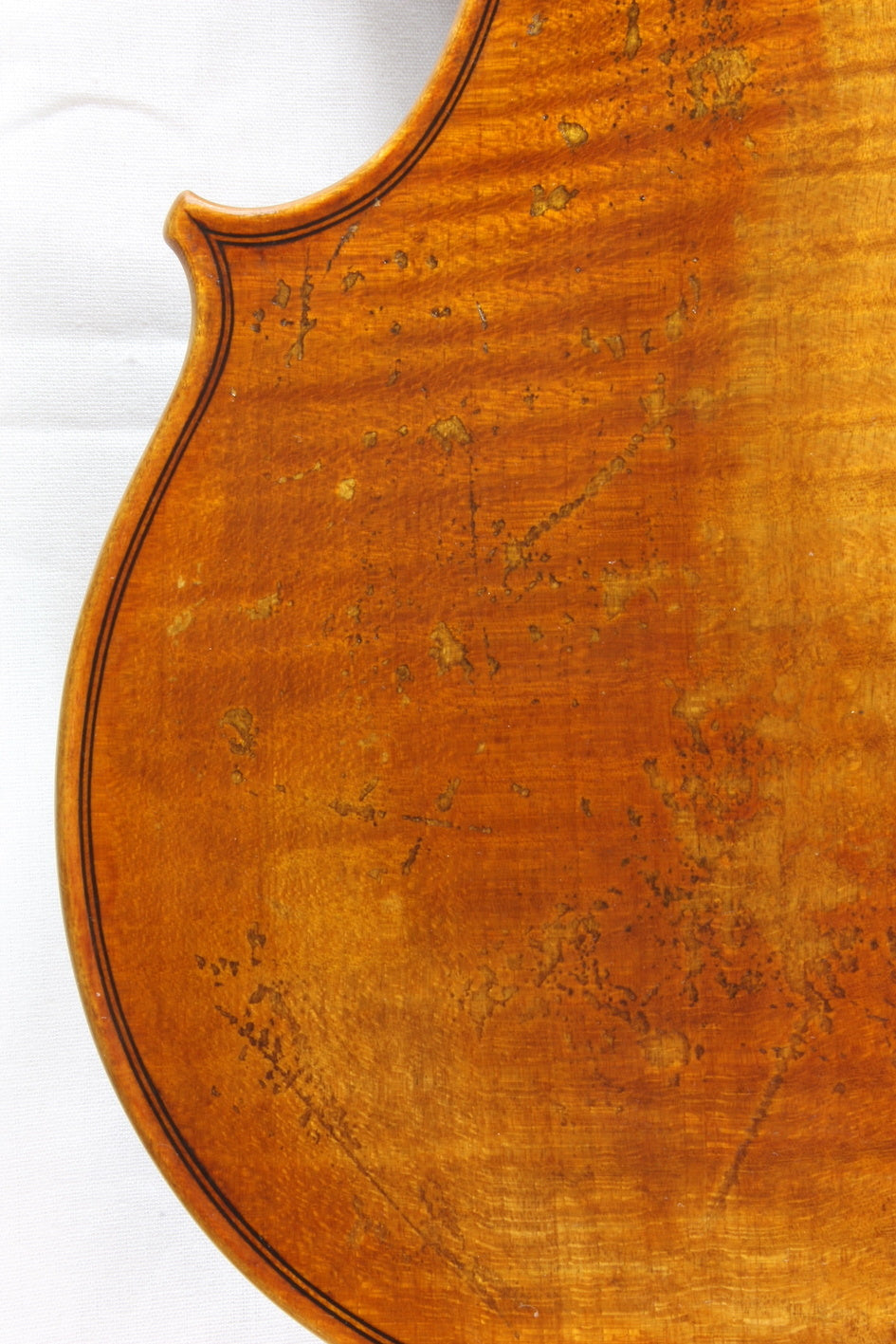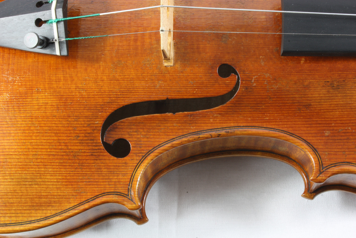 With my tailpieces, I can control the mass and its distribution, the spacing of the string slots, the precise length that can simultaneously consider a particular violin’s body length, body stop, string length and after length and how much tailgut protrudes out of the tailpiece before it touches the crest of the saddle.  I feel that having an after length of 1/6 the string length is important but not as important as how much tailgut is exposed.
