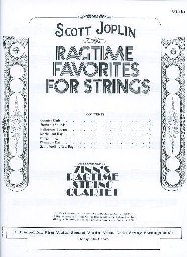 Joplin, Scott (Zinn): Ragtime Favorites for String Quartet (Viola)