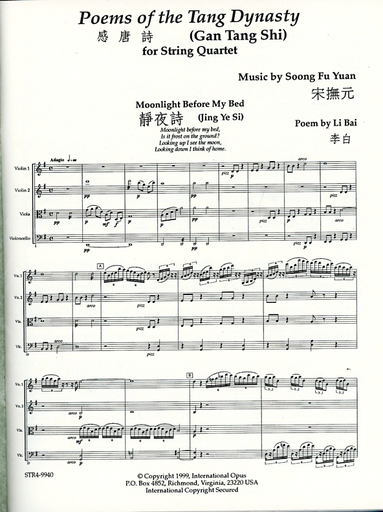 Soong, Fu-Yuan, Poems of the Tang Dynasty (Gan Tang Shi) for String Quartet, score and parts