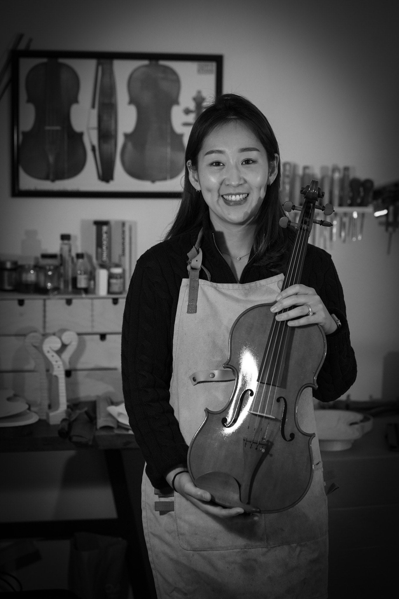Stella Eunbyul Yoo is a violin maker based in the Bay area, California. She is originally from Seoul, South Korea and began to study the violin at the age of 8. She has always been passionate about string instruments and wanted to pursue a profession that would allow her to play and work with violins. She was inspired to move to Italy in 2011 and attend the Cremona Violin Making School to learn the history and traditions from some of the best luthiers in the world. In 2015 after the Cremona School, she was fortunate to be selected as the apprentice for Luca Primon, who became her mentor for several years. During this time, she won multiple awards in cello and viola making.