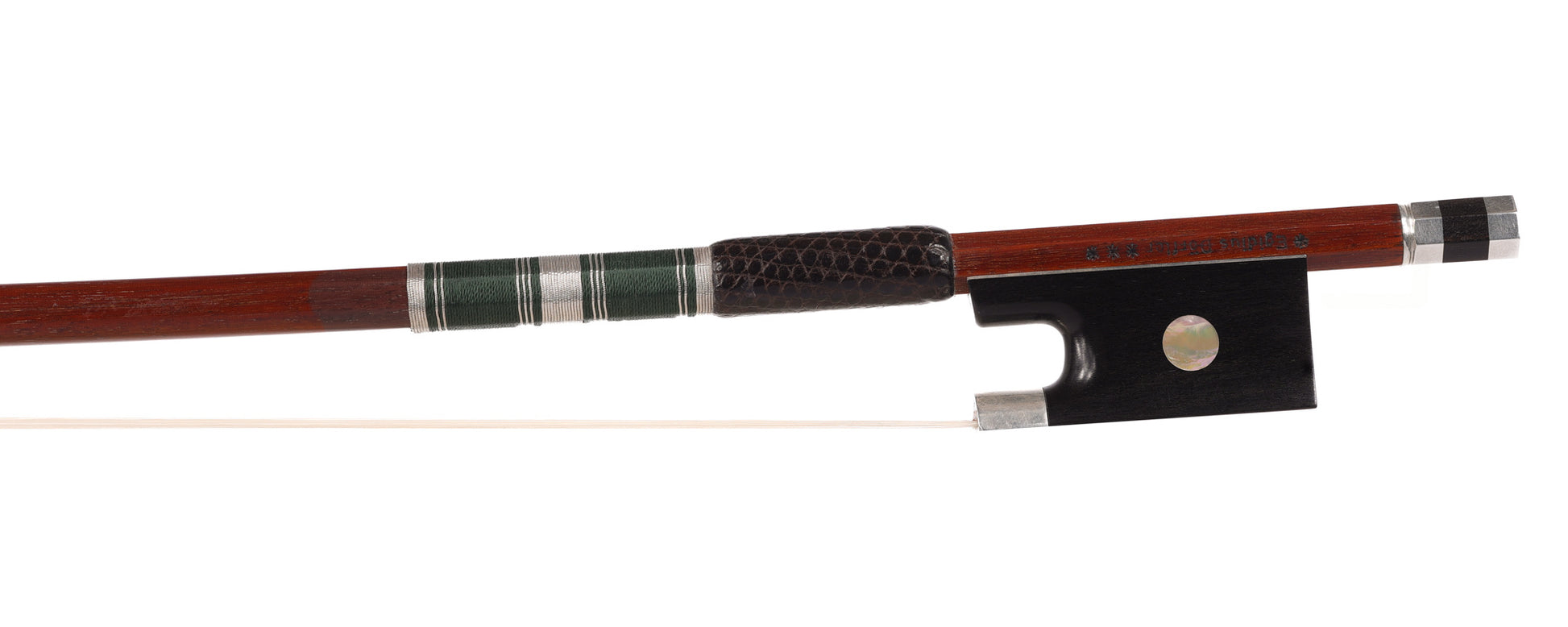 *Egidius Dörfler*** silver violin bow, Ligne Boheme, dark round Pernambuco stick, silver & green grip, 61.3g, GERMANY